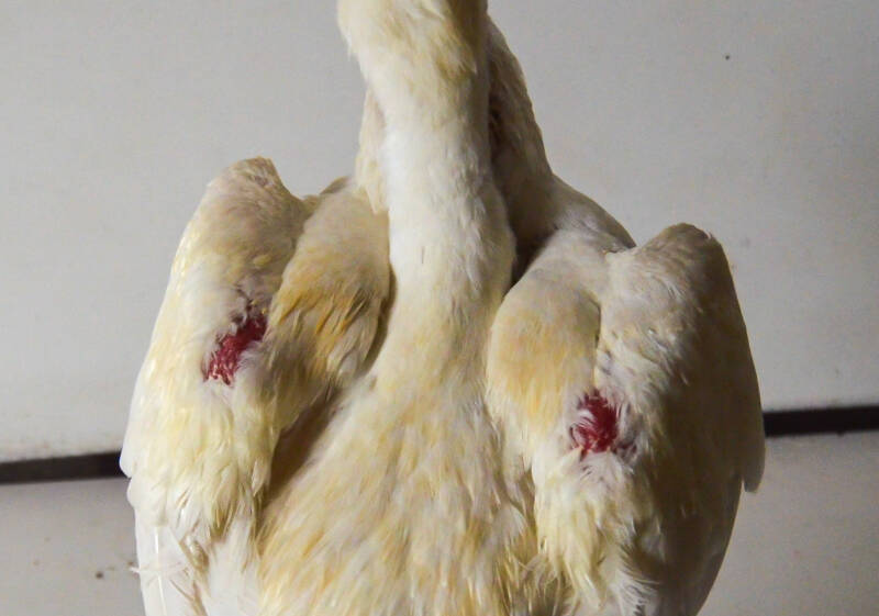 De schouders en vleugelboeg moeten duidelijk uitsteken en de vleugels worden relatief ver van het lichaam gedragen. Hoe hoger en hoe hoekiger de vleugels gedragen worden, des te rechter het dier zal lijken.